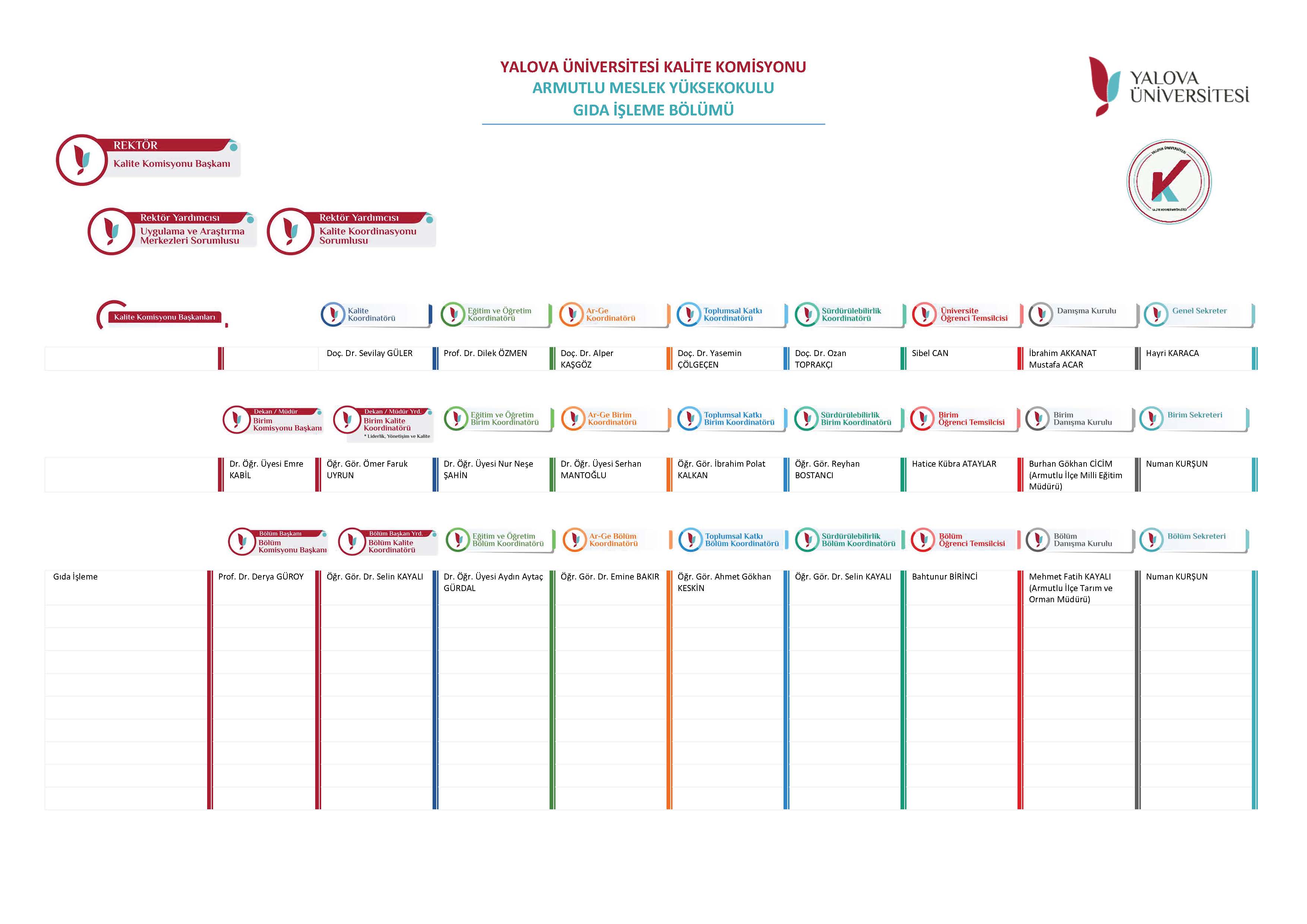 Gıda İşleme Bölümüne ait Bölüm Kalite Komisyonu aşağıdadır.